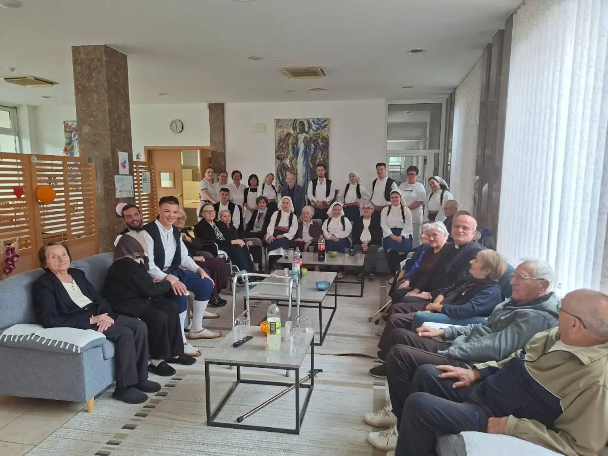 Mladi folkloraši, odjeveni u narodne nošnje, stigli su uz pjesmu i svečarsku tortu, a njihovo pojavljivanje izazvalo je oduševljenje među štićenicima i osobljem doma. Susret je započeo stihovima: